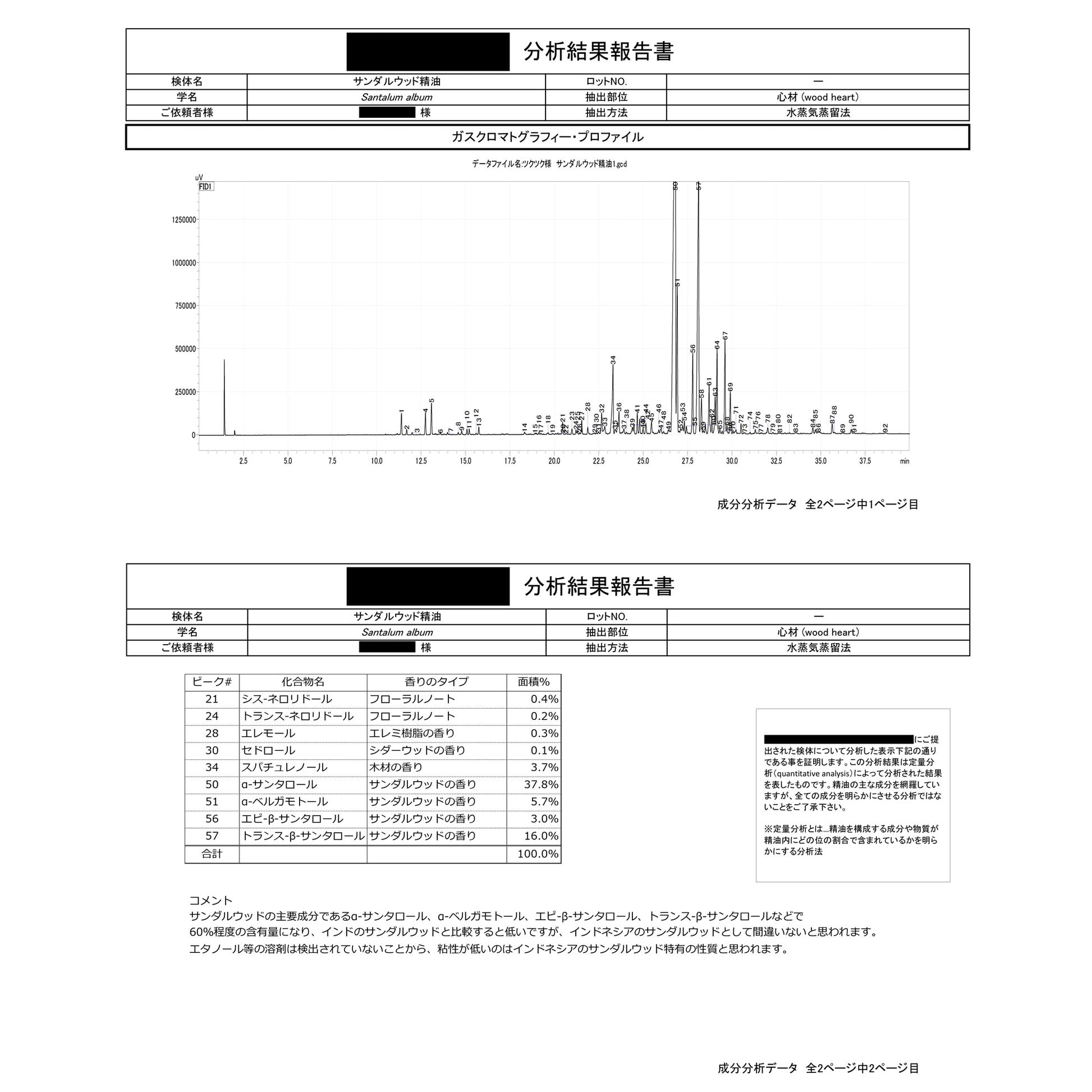 | 成分名 | ビャクダン油 |
