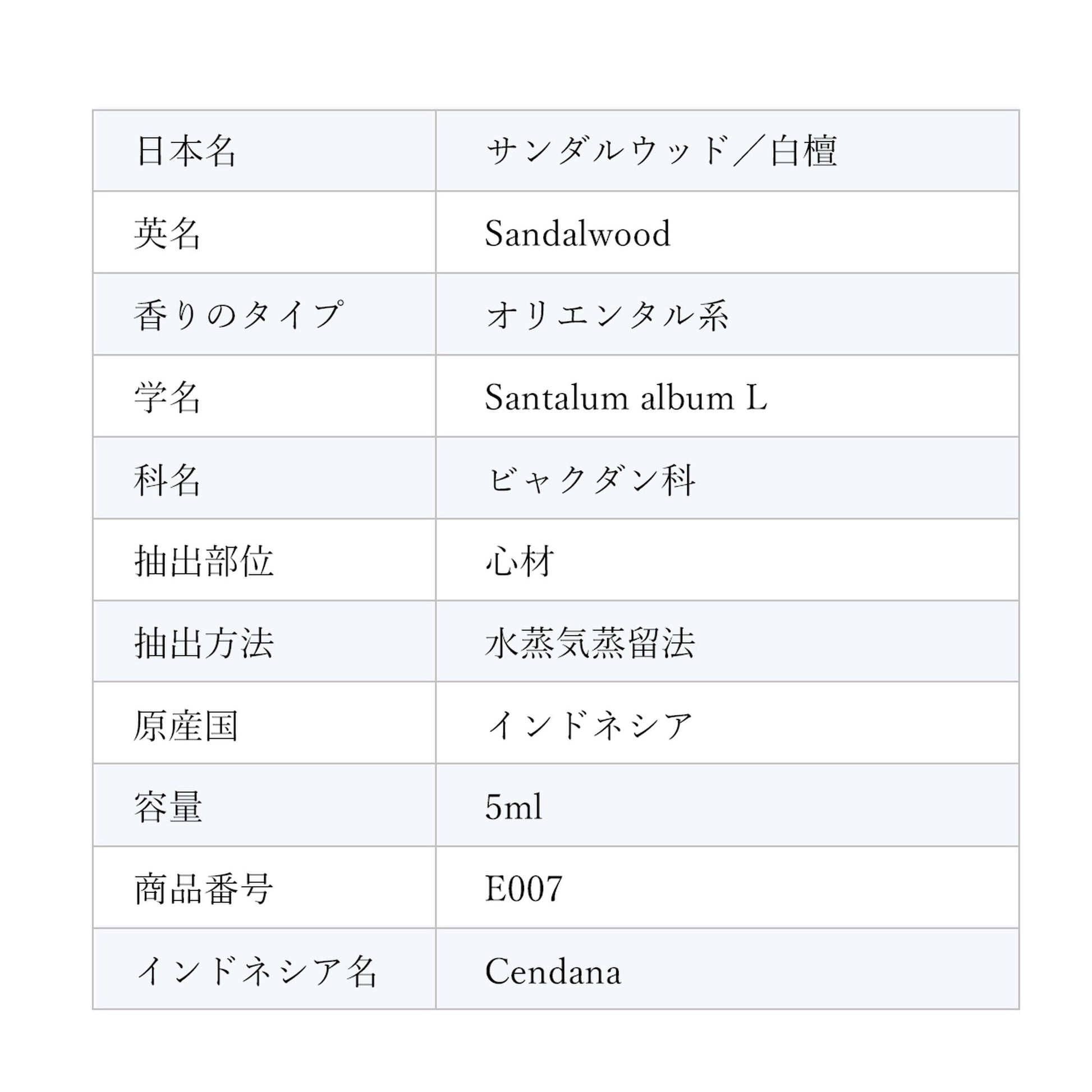 日本名: サンダルウッド/白檀